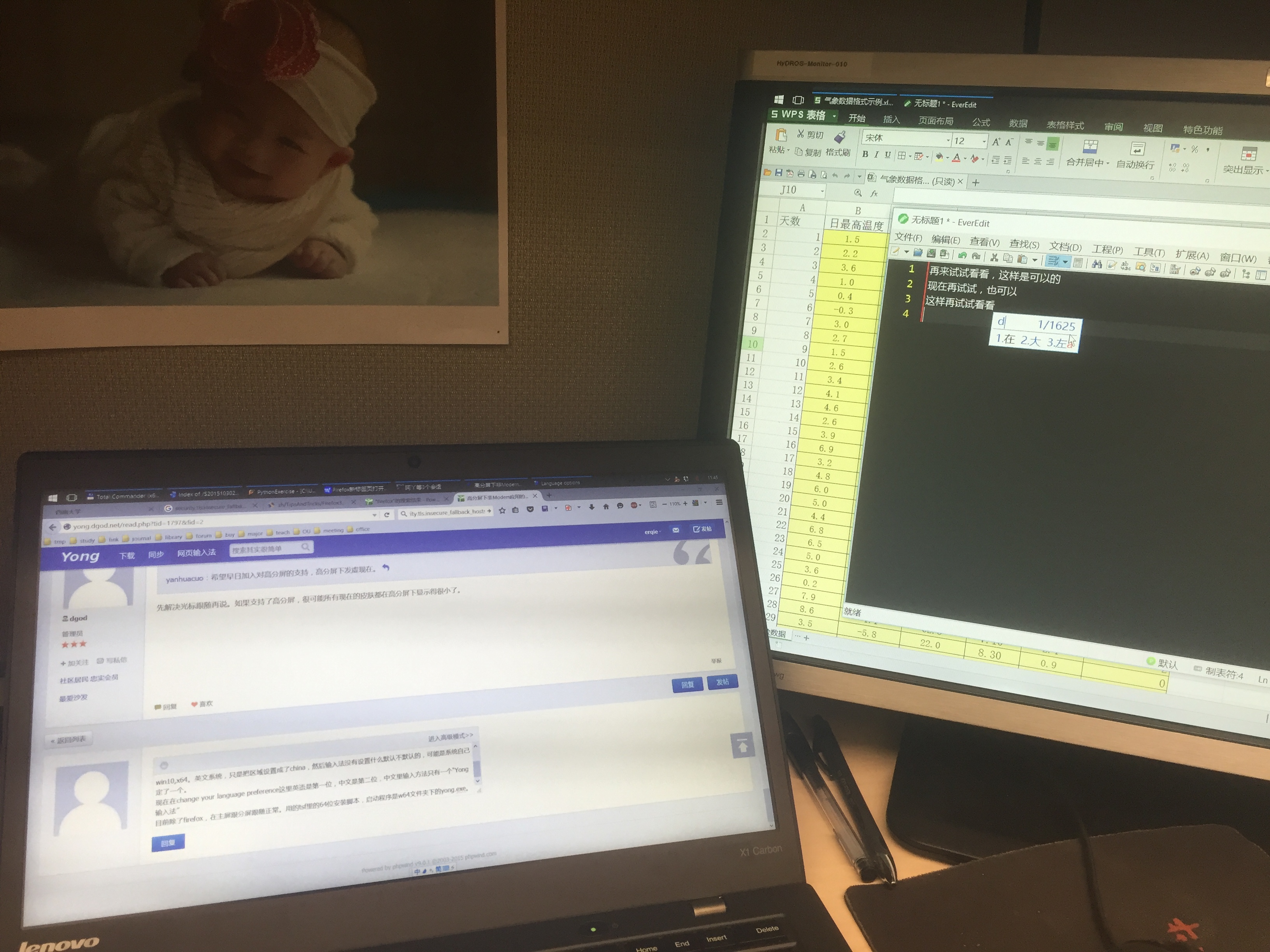 我是高分屏,屏幕默认放大125%,好像是这个数字。 yong.exe不设置禁用DPI的话所有窗口是模糊的,我禁用DPI后就好了。 win10,x64。英文系统,只是把区域设置成了china,然后输入法没有设置什么默认不默认的,可能是系统自己定了一个。 现在在change your language preference这里英语是第一位,中文是第二位,中文里输入方法只有一个“Yong输入法” 目前除了firefox,在主屏跟分屏跟随正常。用的tsf里的64位安装脚本,启动程序是w64文件夹下的yong.exe。 PS:插入的照片怎么跑这个位置上去了? |