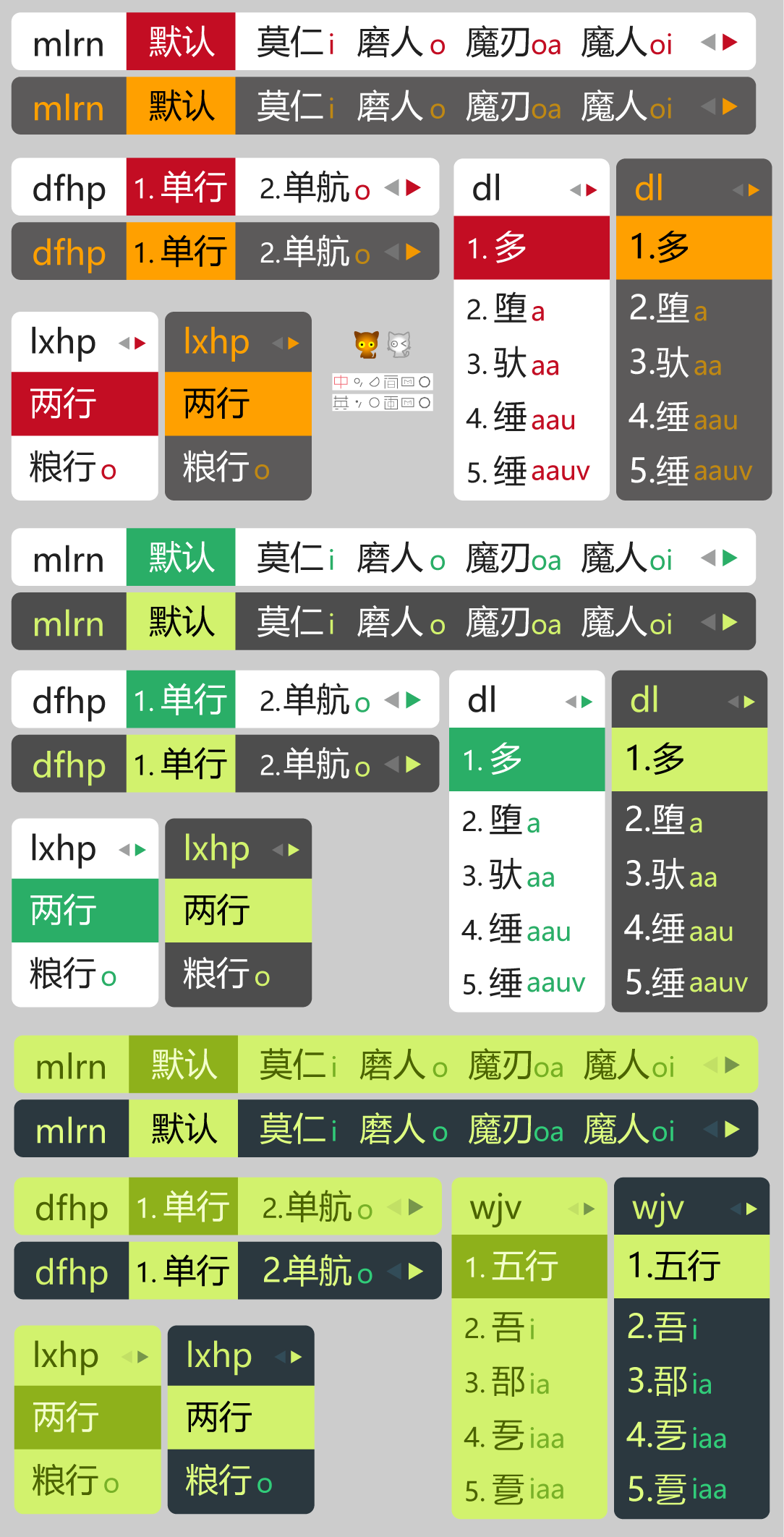 候选窗 增加圆角、候选背景色、透明度、卸掉边框色 状态栏 屏幕置顶、图标重绘 托盘图标 星猫键道猫的仿生绘 此皮肤在低分辨率电脑上的呈现可能并不如愿 喜者自取 附件上传限制 回复可见 本部分内容设定了隐藏,需要回复后才能看到 本部分内容设定了隐藏,需要回复后才能看到